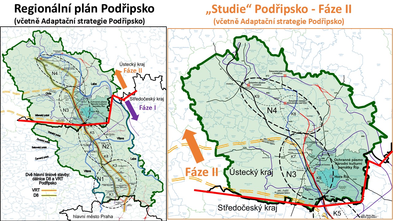 Územní studie regionu Podřipsko (kraj) – pořizovaná Krajským úřadem Středočeského kraje z vlastního podnětu – viz. přijaté usnesení Rady Středočeského kraje č. 151-29/2024/RK ze dne 22. 8. 2024, včetně zadání participativně projednané územní studie. Zadávací dokumentace k výběrovému řízení na zhotovitele Územní studie regionu Podřipsko byla schválena usnesením č. 095-44/2025/RK ze dne 19. 12. 2025.